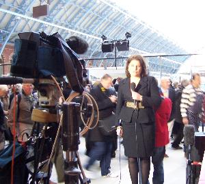 Bénédicte Paviot reporting live on the opening of London's St Pancras International station, the new home of Eurostar. |
