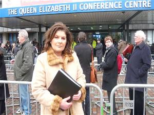 Bénédicte Paviot reporting live for France 24 on the former UK Prime Minister Tony Blair's appearance before the Iraq inquiry on 29 January 2010. |