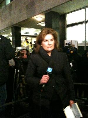 | Bénédicte Paviot reporting for France 24 in December 2010 outside City of Westminster Magistrates' Court in London on the bail hearing of Wikileaks' founder, Julian Assange. | |